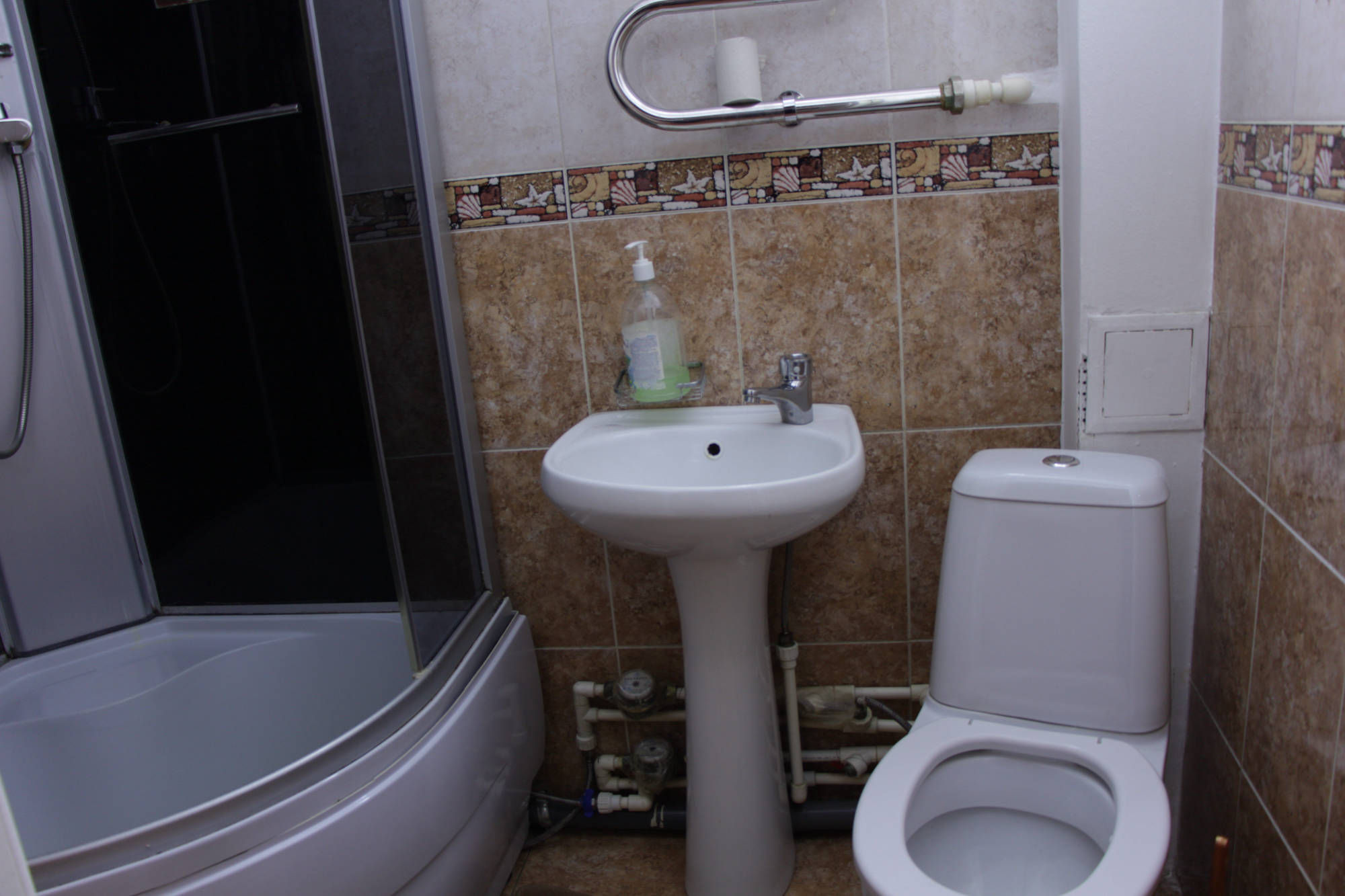 В каждом номере имеется удобная душевая кабина, а также тулетное мыло
